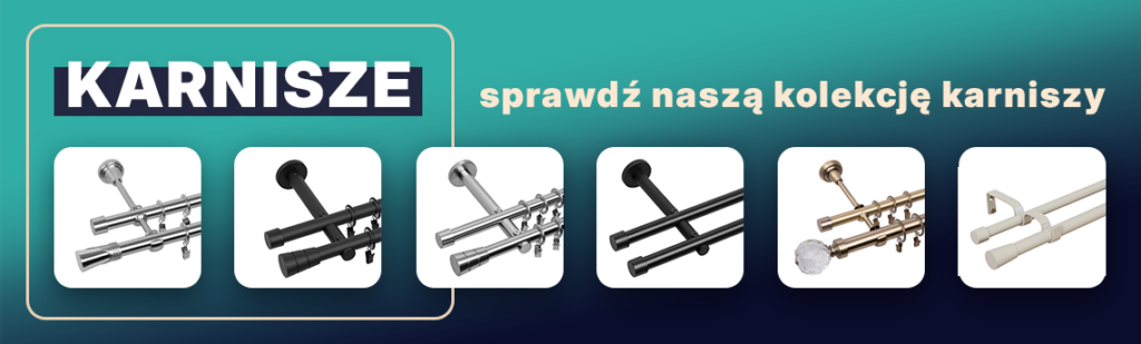 Jeśli chcemy uzyskać spójny efekt aranżacyjny, dobierzmy do karniszy również czarne dodatki – np. wsporniki, zakończenia, żabki czy kółka. Drobne elementy w tym samym kolorze tworzą harmonijną całość i unikają efektu „zlewania się” tkaniny z mocowaniem.
