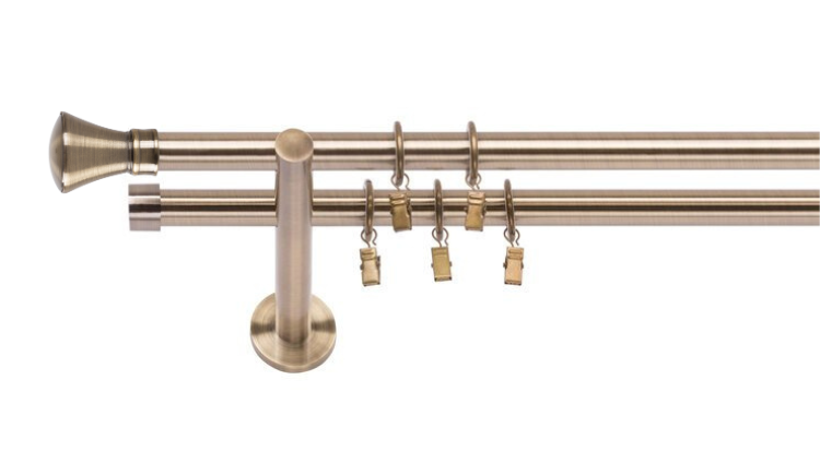 Karnisz podwójny nowoczesny fi 19 złoto antyk Monako