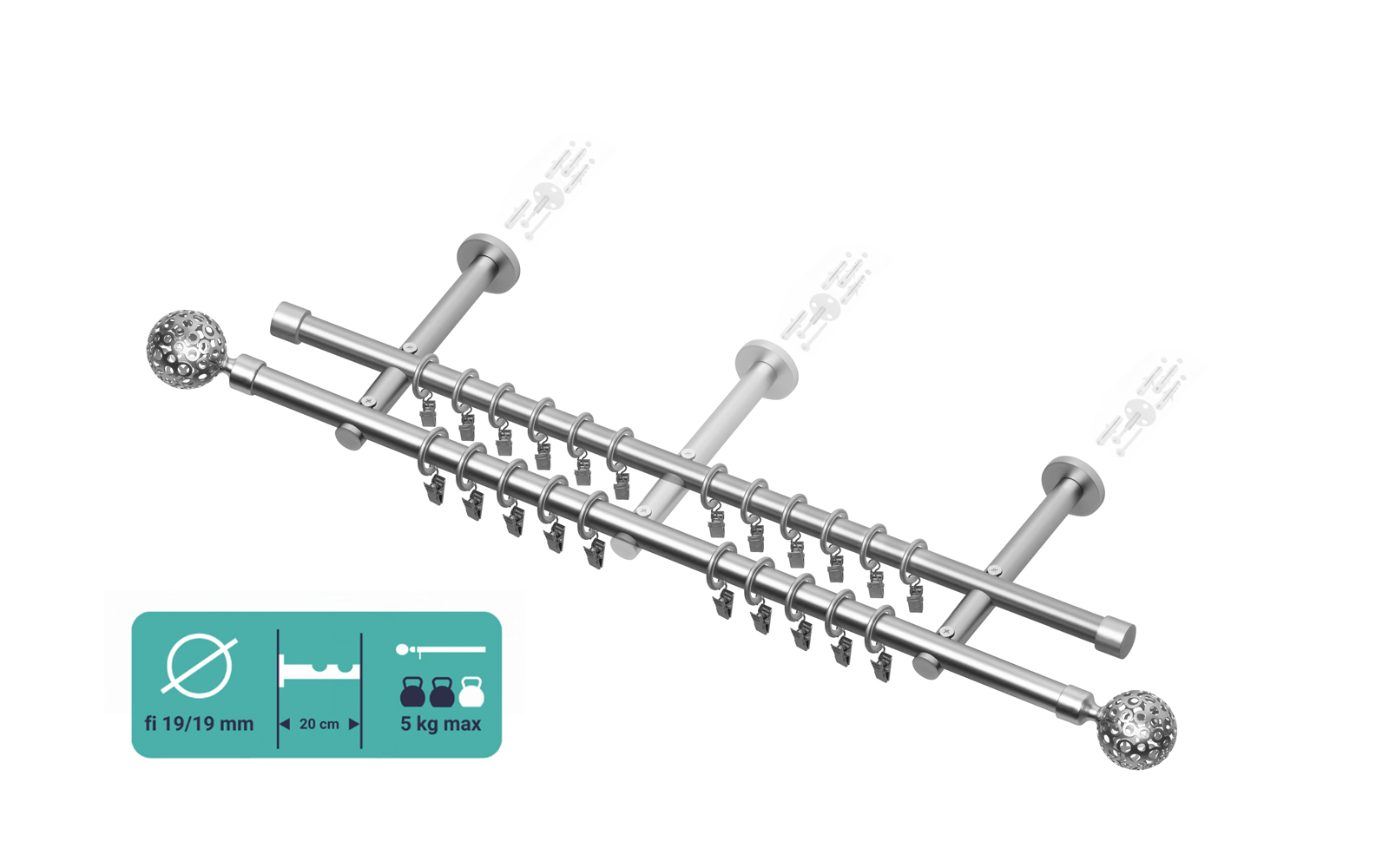 ✅ 2 szt. Wsporników podwójnych fi 19 mm (w  przypadku karnisza powyżej 240 cm dokładany jest trzeci wspornik)