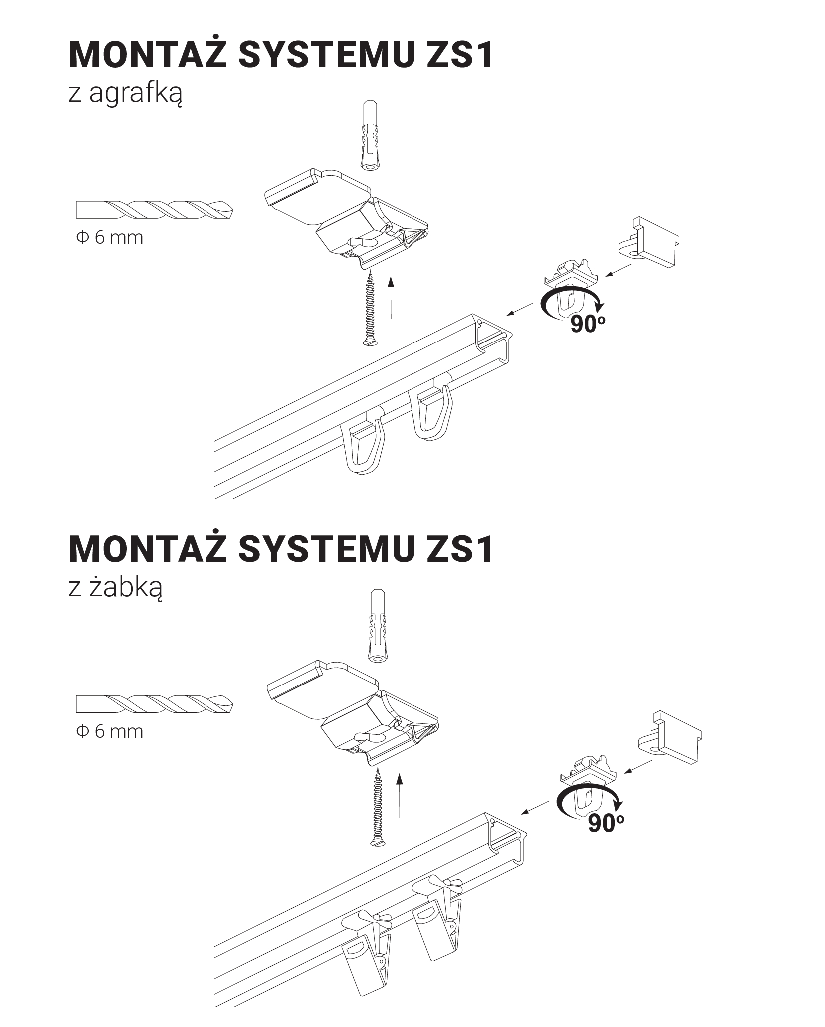 Jest to alternatywna opcja mocowania, stosowana do ciężkich zasłon. Zapewnia swobodne przesuwanie firan i zasłon na całej długości karnisza.