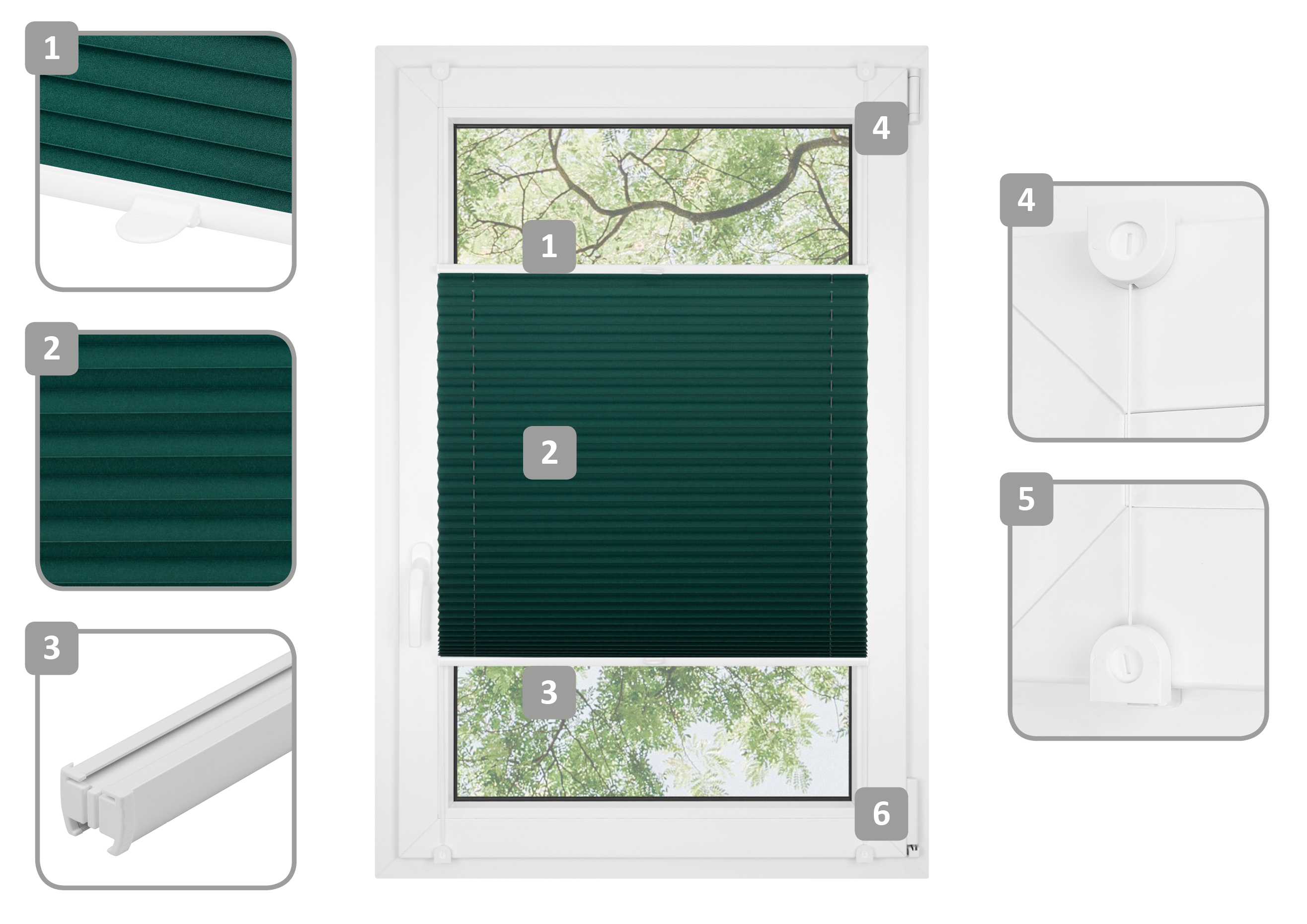 Roleta plisowana klasyczna 674MK BUTELKOWA ZIELEŃ profil Biały