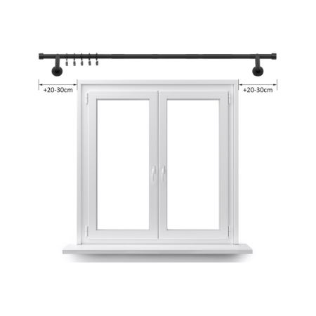 Aby dobrać prawidłowy rozmiar karnisza zmierz szerokość wnęki okiennej i dodaj 40-60 cm (po 20-30 cm na każdą stronę). Dzięki temu firanka lub zasłona będzie nachodzić na ścianę, tworząc dopełnienie wystroju wnętrza. Wsporniki powinny być zamontowane od wnęki okna o około 15 cm. Podany w aukcji rozmiar karnisza jest długością samej rurki.