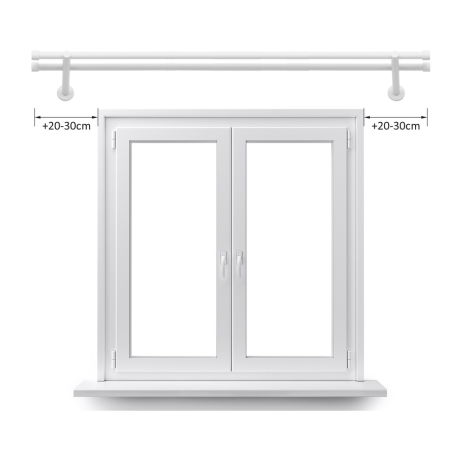 Aby dobrać prawidłowy rozmiar karnisza zmierz szerokość wnęki okiennej i dodaj 40-60 cm (po 20-30 cm na każdą stronę). Dzięki temu firanka lub zasłona będzie nachodzić na ścianę, tworząc dopełnienie wystroju wnętrza. Wsporniki powinny być zamontowane od wnęki okna o około 15 cm.