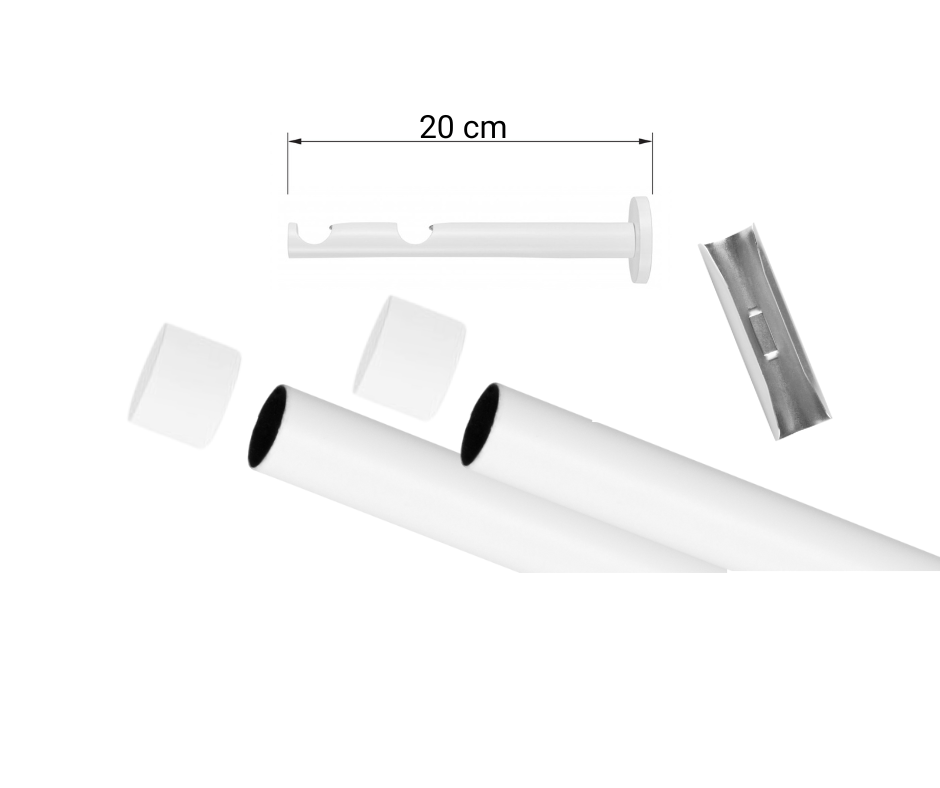 ✅ 2 szt. wsporniki podwójnych fi 19 mm wykonane w całości z metalu, pokryte powłoką galwaniczną, charakteryzujące się minimalistycznym i nowoczesnym wzornictwem. Długość wspornika to 20 cm (+- 1 cm). Dla karniszy powyżej 240 cm dołączany jest trzeci wspornik.