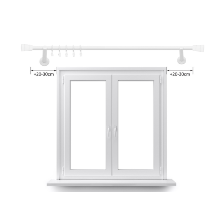 Aby dobrać prawidłowy rozmiar karnisza zmierz szerokość wnęki okiennej i dodaj 40-60 cm (po 20-30 cm na każdą stronę). Dzięki temu firanka lub zasłona będzie nachodzić na ścianę, tworząc dopełnienie wystroju wnętrza. Wsporniki powinny być zamontowane od wnęki okna o około 15 cm. Podany w aukcji rozmiar karnisza jest długością samej rurki.