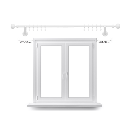 Aby dobrać prawidłowy rozmiar karnisza zmierz szerokość wnęki okiennej i dodaj 40-60 cm (po 20-30 cm na każdą stronę). Dzięki temu firanka lub zasłona będzie nachodzić na ścianę, tworząc dopełnienie wystroju wnętrza. Wsporniki powinny być zamontowane od wnęki okna o około 15 cm.