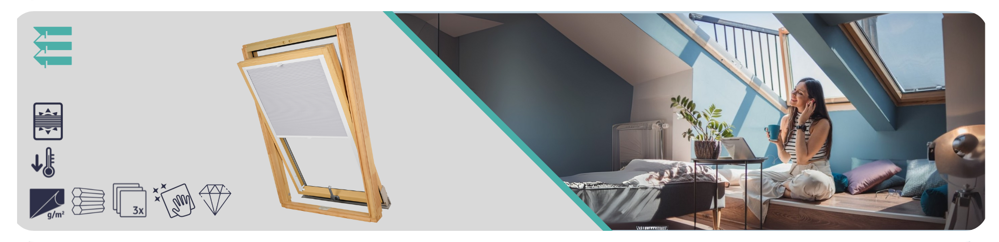 Roleta plisowana plaster miodu w konfiguracji dachowej to powiew świeżości na rynku dekoracji okiennej.