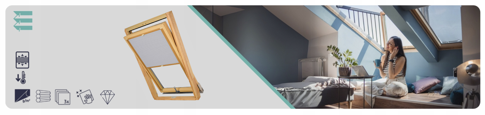 Roleta plisowana plaster miodu w konfiguracji dachowej to powiew świeżości na rynku dekoracji okiennej.