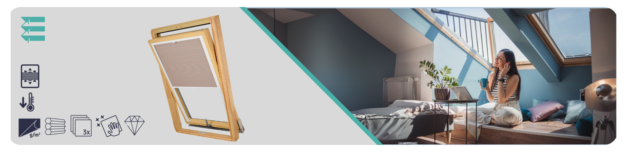 Roleta plisowana plaster miodu w konfiguracji dachowej to powiew świeżości na rynku dekoracji okiennej.