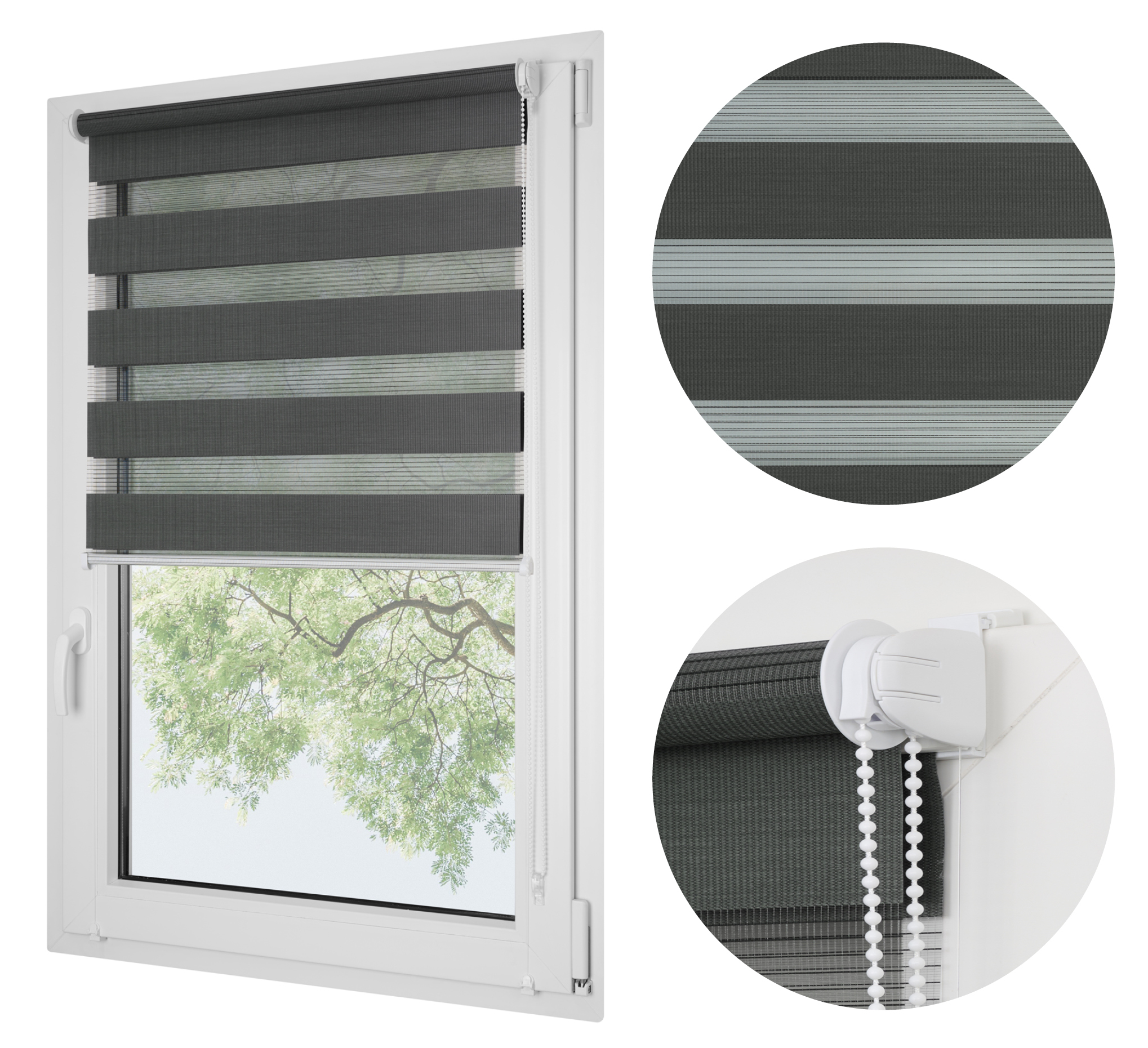 ROLETA DZIEŃ NOC SOFT BEZINWAZYJNA Z NAPINACZEM GRAFITOWA