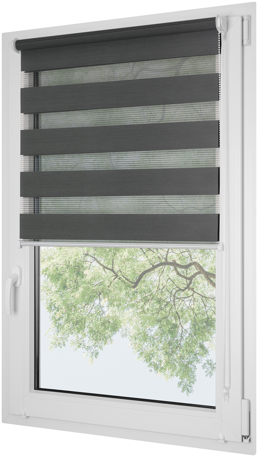 System ten polega na naprzemiennym mijaniu się tych tkanin w dwóch warstwach, regulując w ten sposób stopień zaciemnienia.