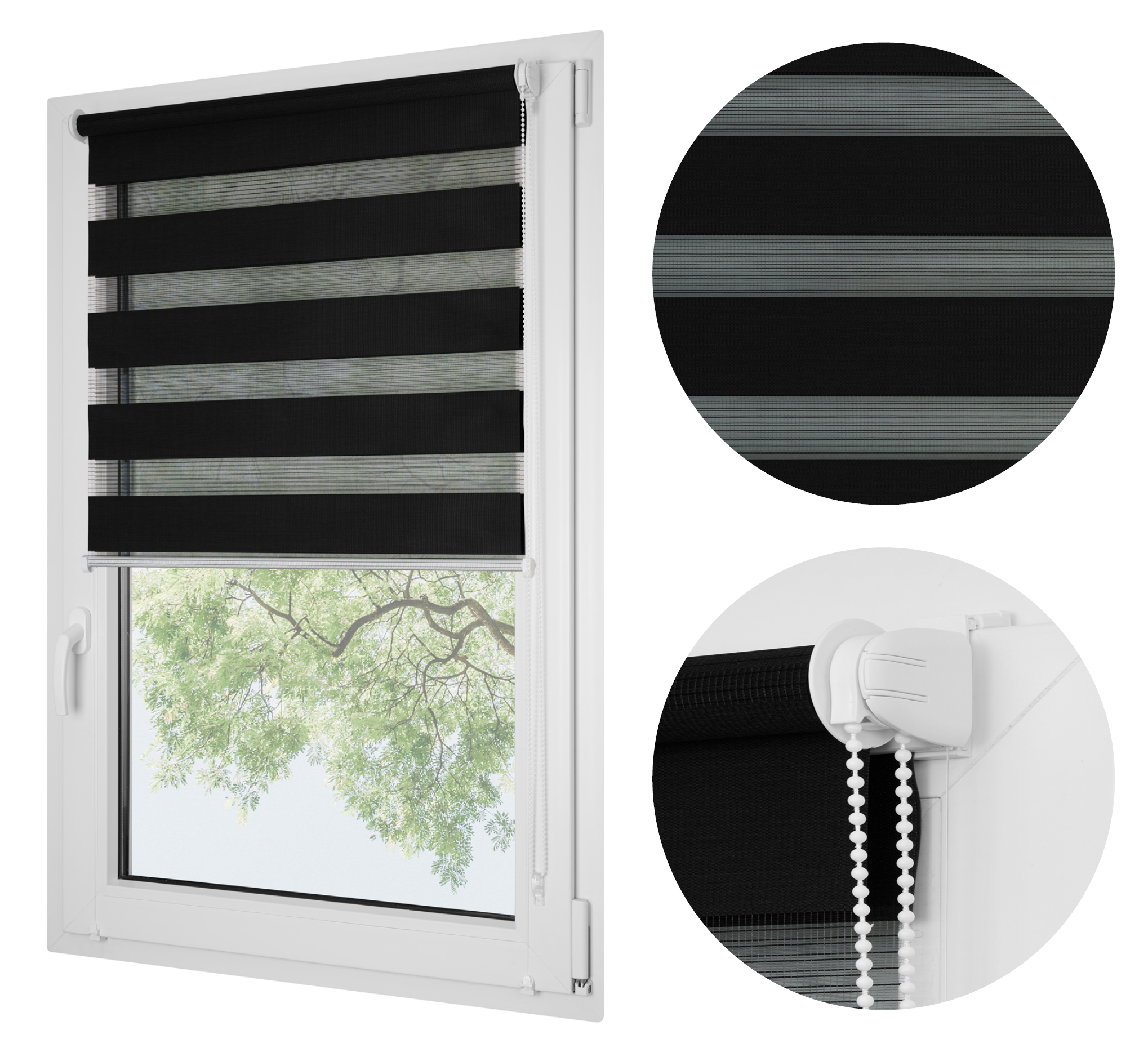 ROLETA DZIEŃ NOC SOFT BEZINWAZYJNA Z NAPINACZEM CZARNA