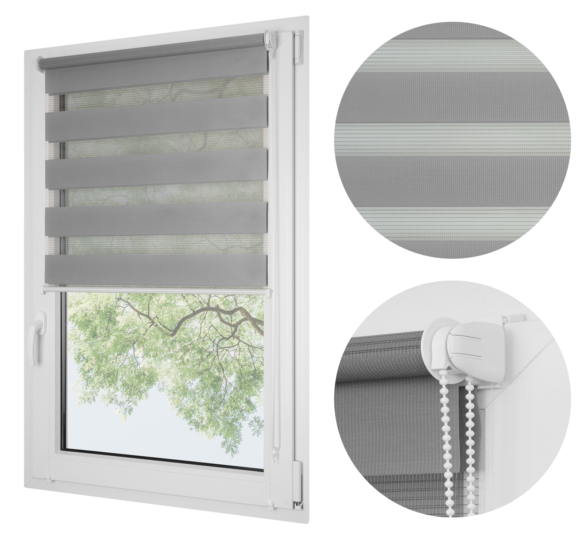 ROLETA DZIEŃ NOC SOFT BEZINWAZYJNA Z NAPINACZEM SZARA
