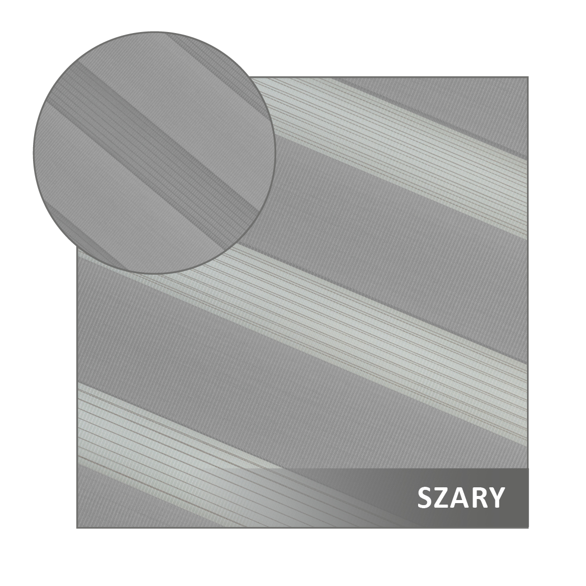 Materiał rolety dzień noc składa się z dwóch rodzajów połączonych tkanin w strukturze poziomych pasów: materiału głównego oraz transparentnej siatki.