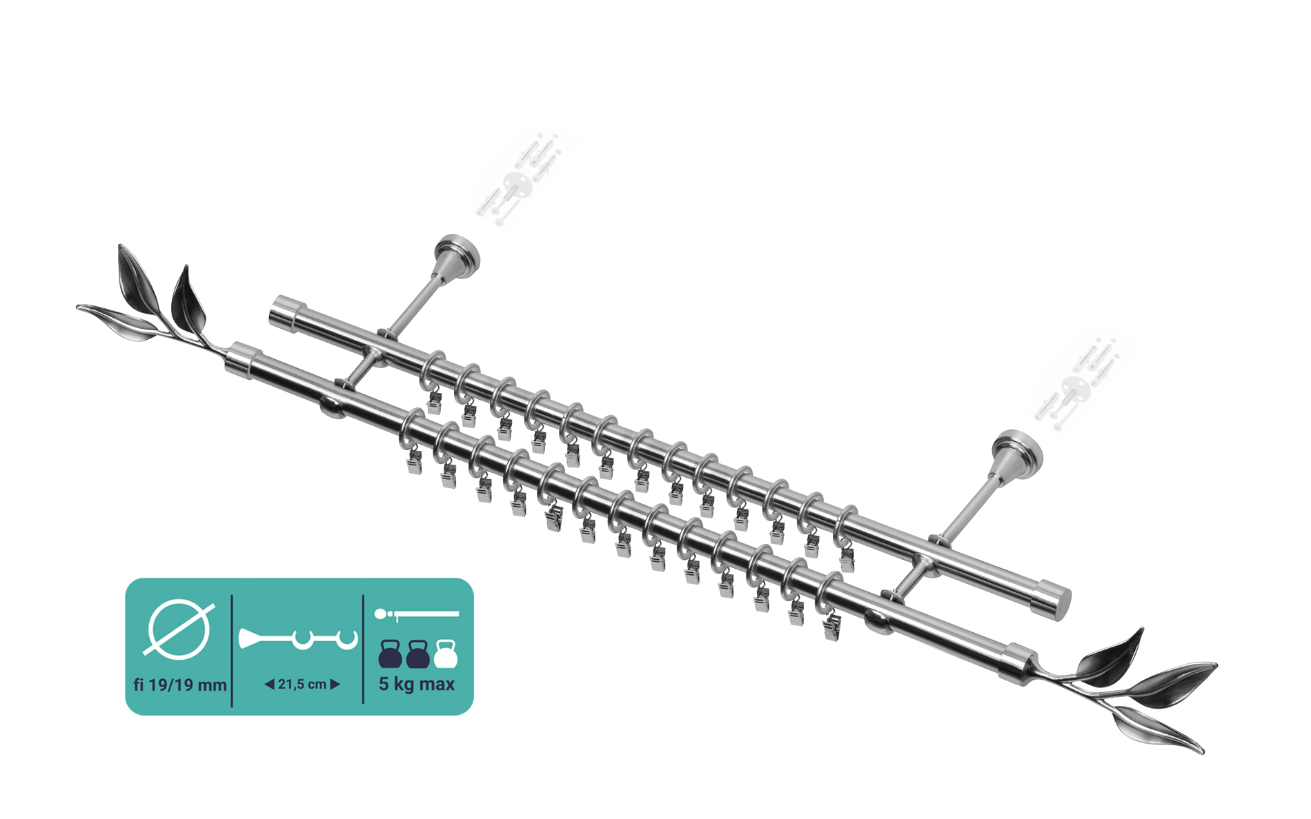 ✅ 2 szt. Wsporników podwójnych fi 19 mm (w  przypadku karnisza powyżej 240 cm dokładany jest trzeci wspornik)