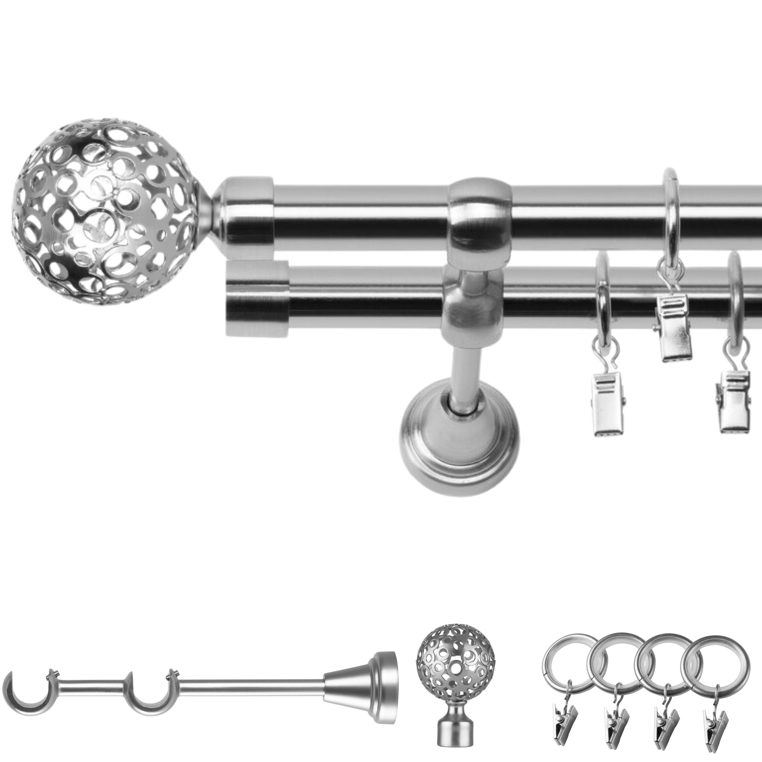 Uwaga - karnisz powyżej 240 cm długości dzielony jest na dwie części. Czyli zamawiając karnisz 260 cm długości będzie składał się on z czterech rurek po 130 cm. Do zestawu zostanie dołożony 3 wspornik oraz łączniki do rur.