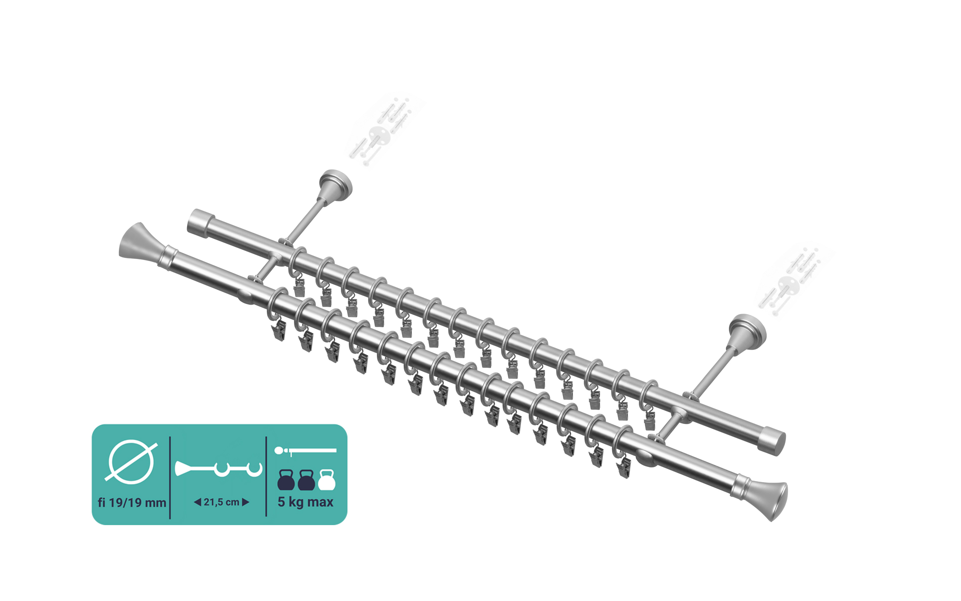 ✅ 2 szt. Wsporników podwójnych fi 19 mm (w  przypadku karnisza powyżej 240 cm dokładany jest trzeci wspornik)