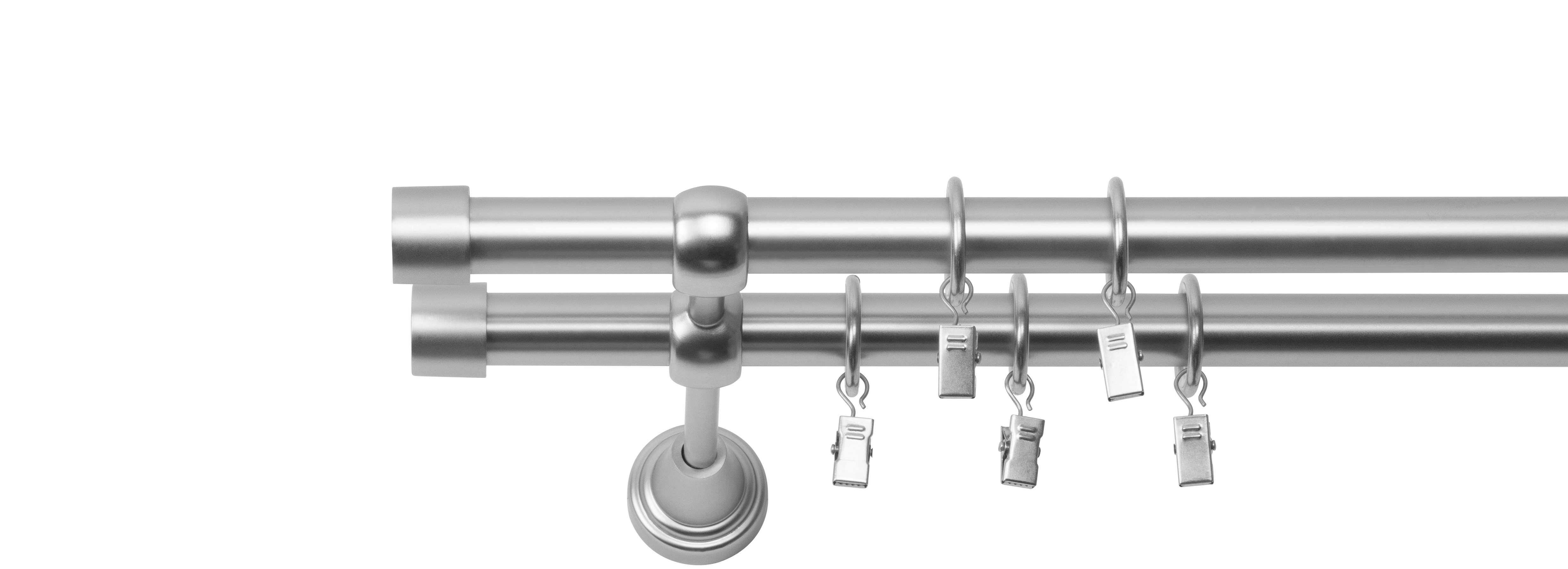 Karnisz podwójny metalowy fi 19 chrom mat Walec