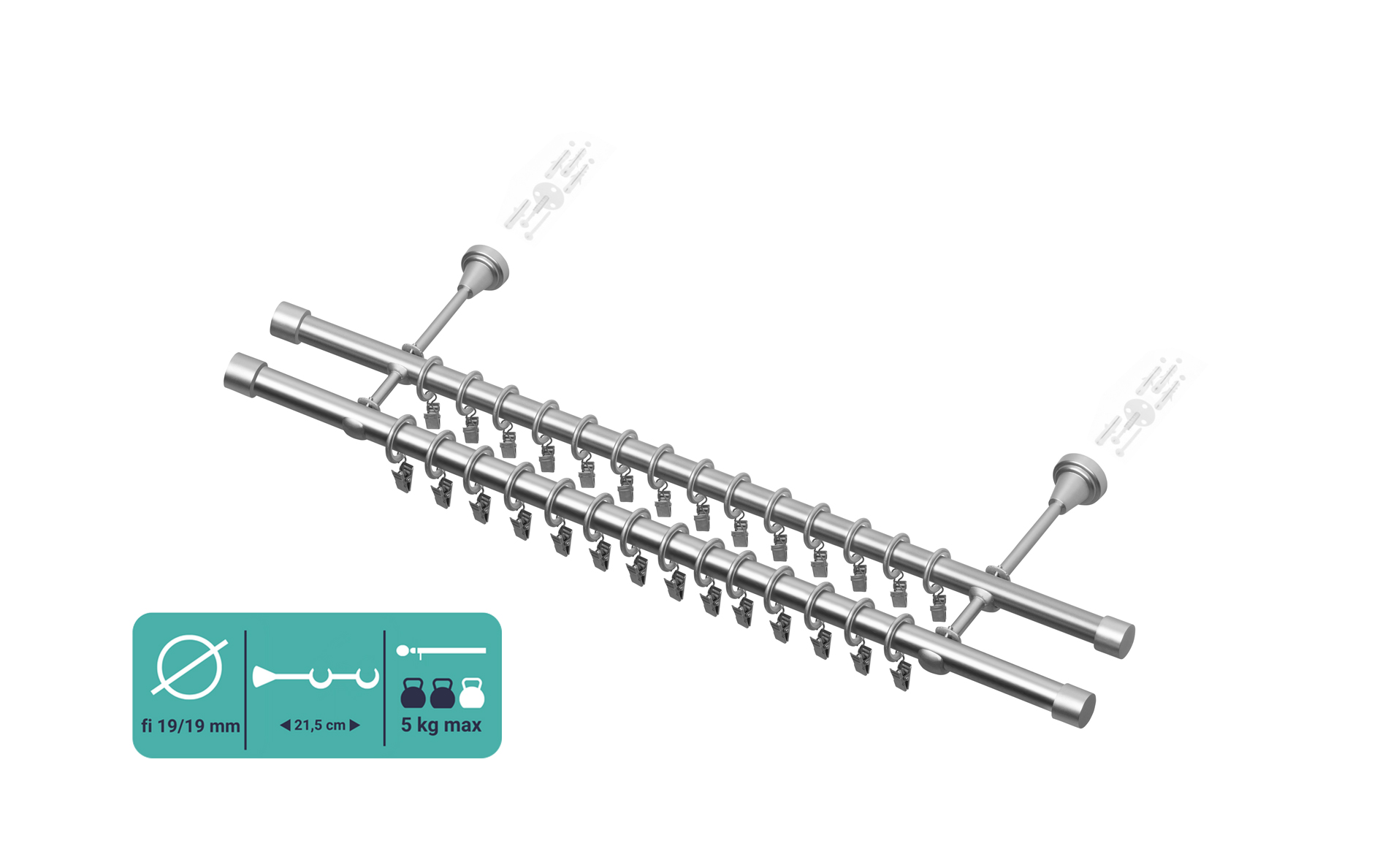 ✅ 2 szt. Wsporników podwójnych fi 19 mm (w  przypadku karnisza powyżej 240 cm dokładany jest trzeci wspornik)