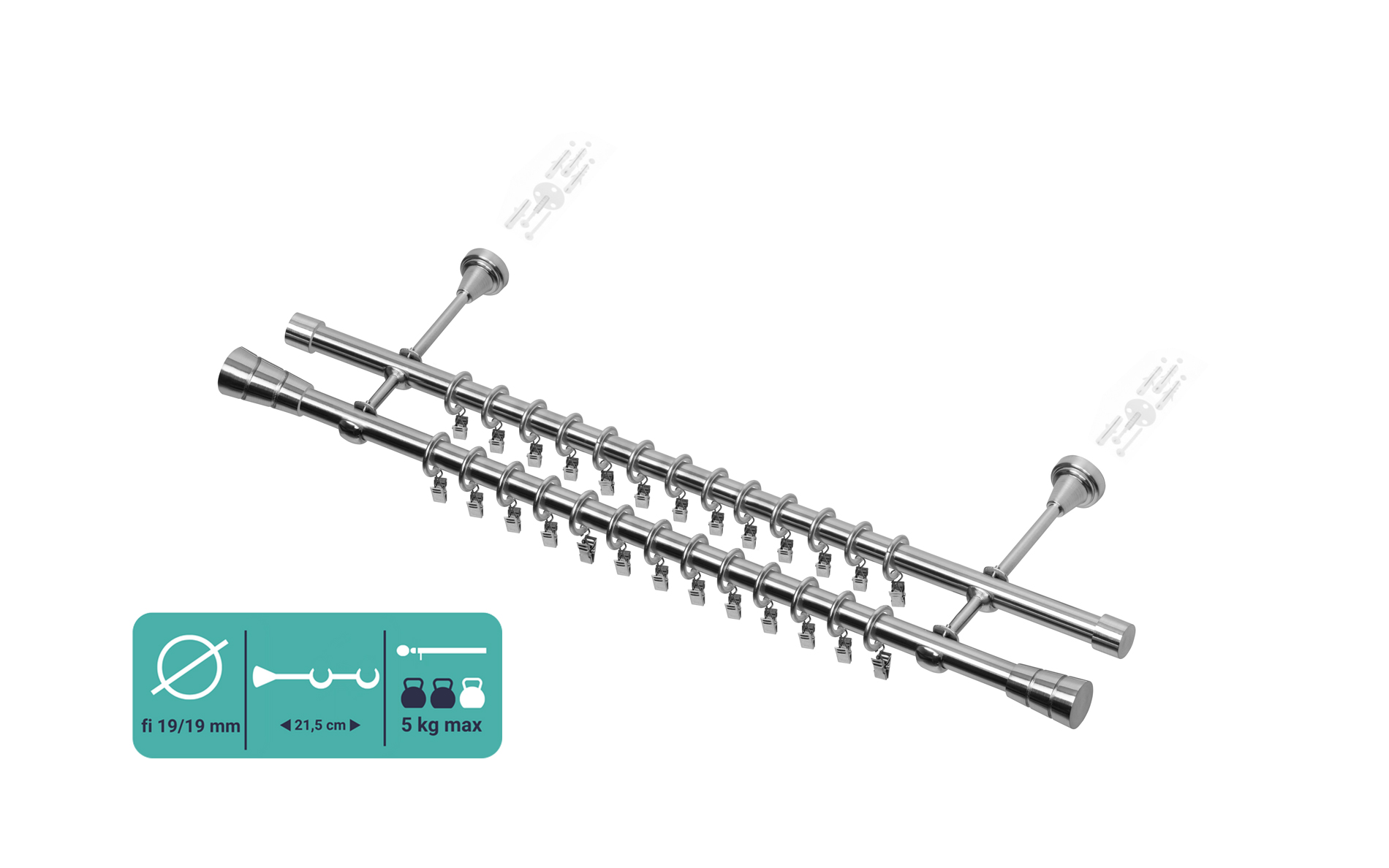 ✅ 2 szt. Wsporników podwójnych fi 19 mm (w  przypadku karnisza powyżej 240 cm dokładany jest trzeci wspornik)