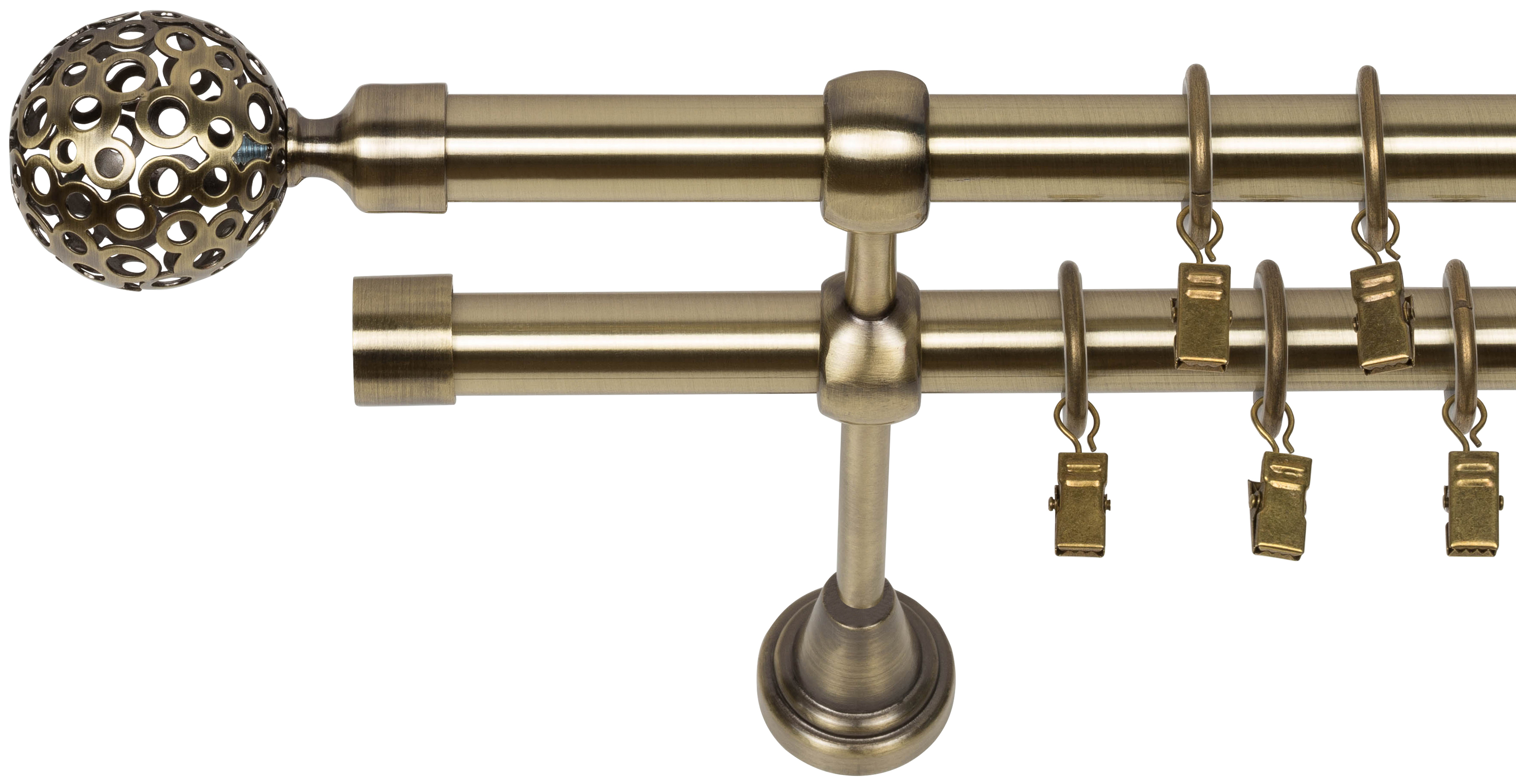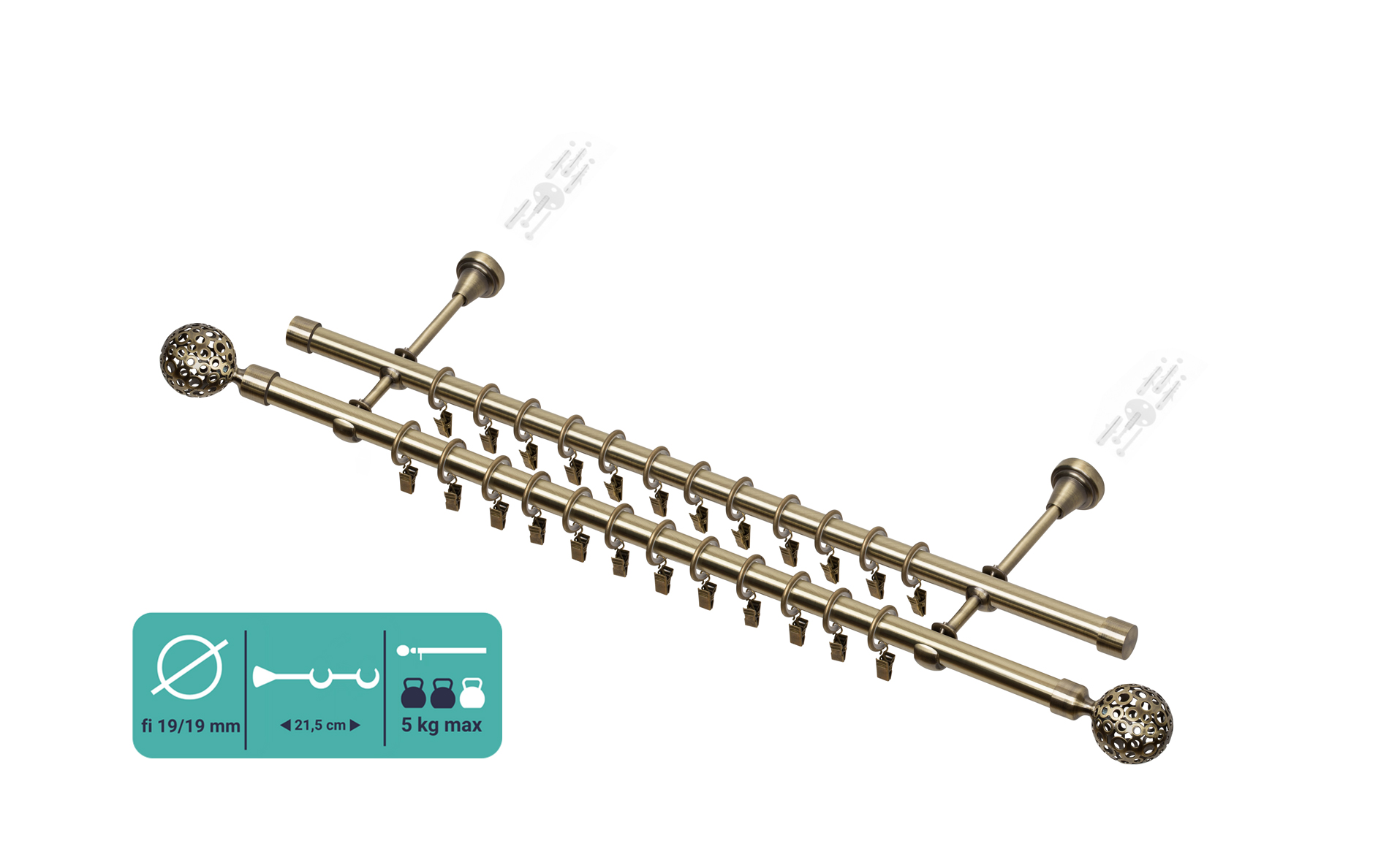 Karnisz podwójny metalowy fi 19 złoto antyk Ażur