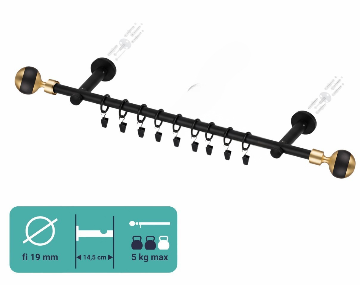 Karnisz pojedynczy fi 19 czarny mat KULA MIX