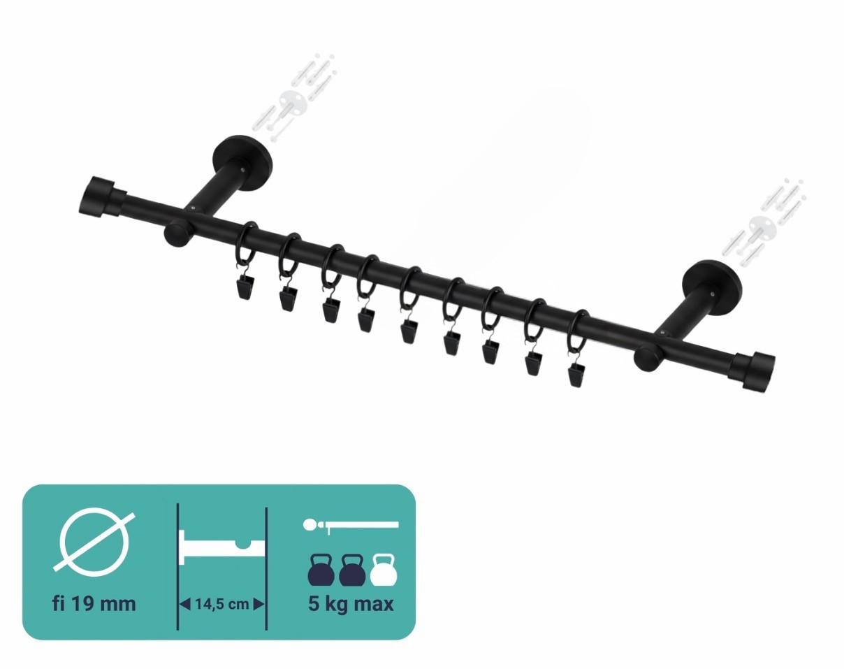 Karnisz pojedynczy fi 19 czarny mat SLICK CZARNY MAT