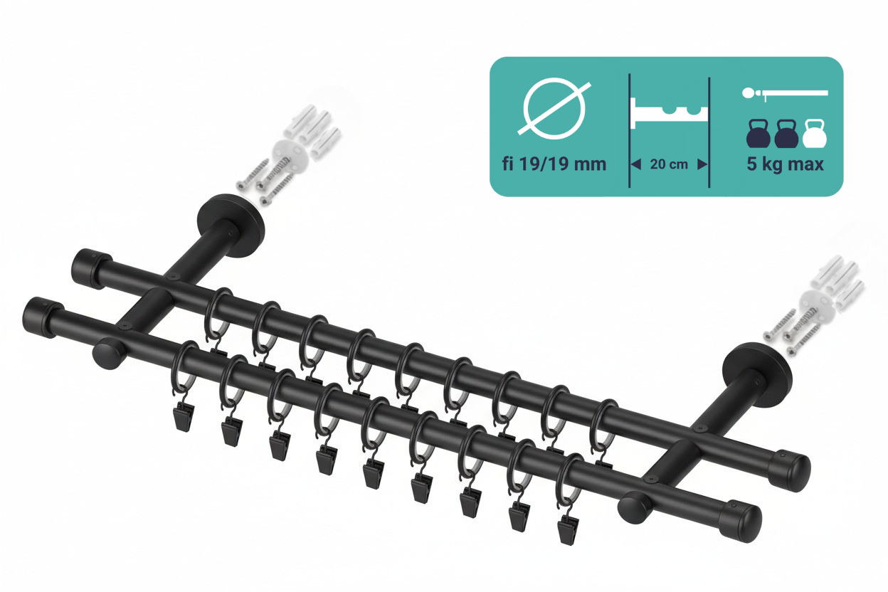 Karnisz podwójny fi 19 czarny mat LUNA