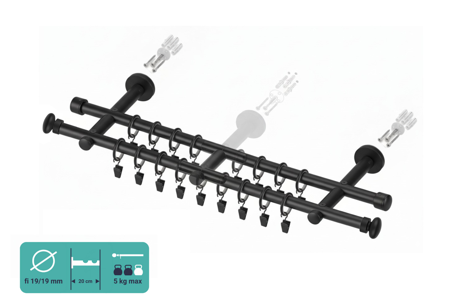Karnisz podwójny fi 19 czarny mat SIGMA