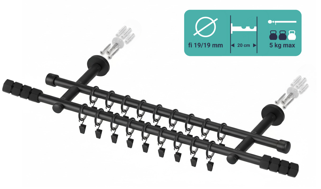 Karnisz podwójny fi 19 czarny mat CRAFT