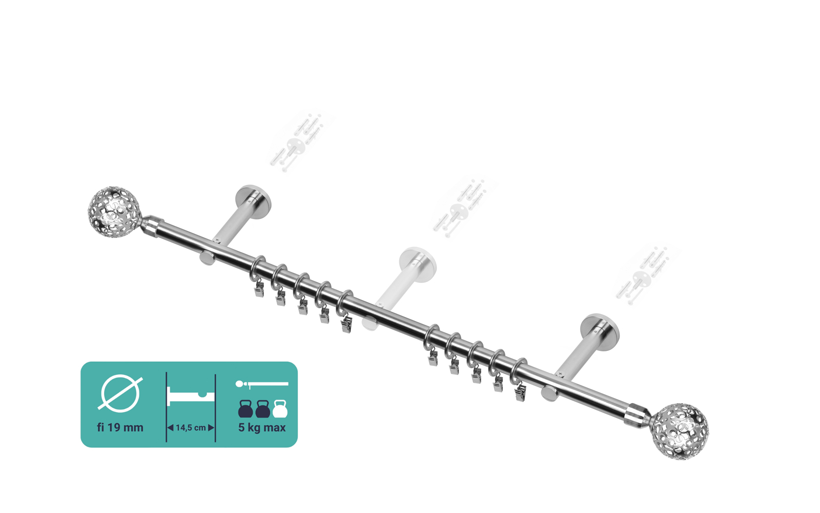 ✅ 2 szt. Wsporników pojedynczych fi 19 mm (w  przypadku karnisza powyżej 240 cm dokładany jest trzeci wspornik)